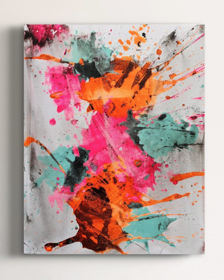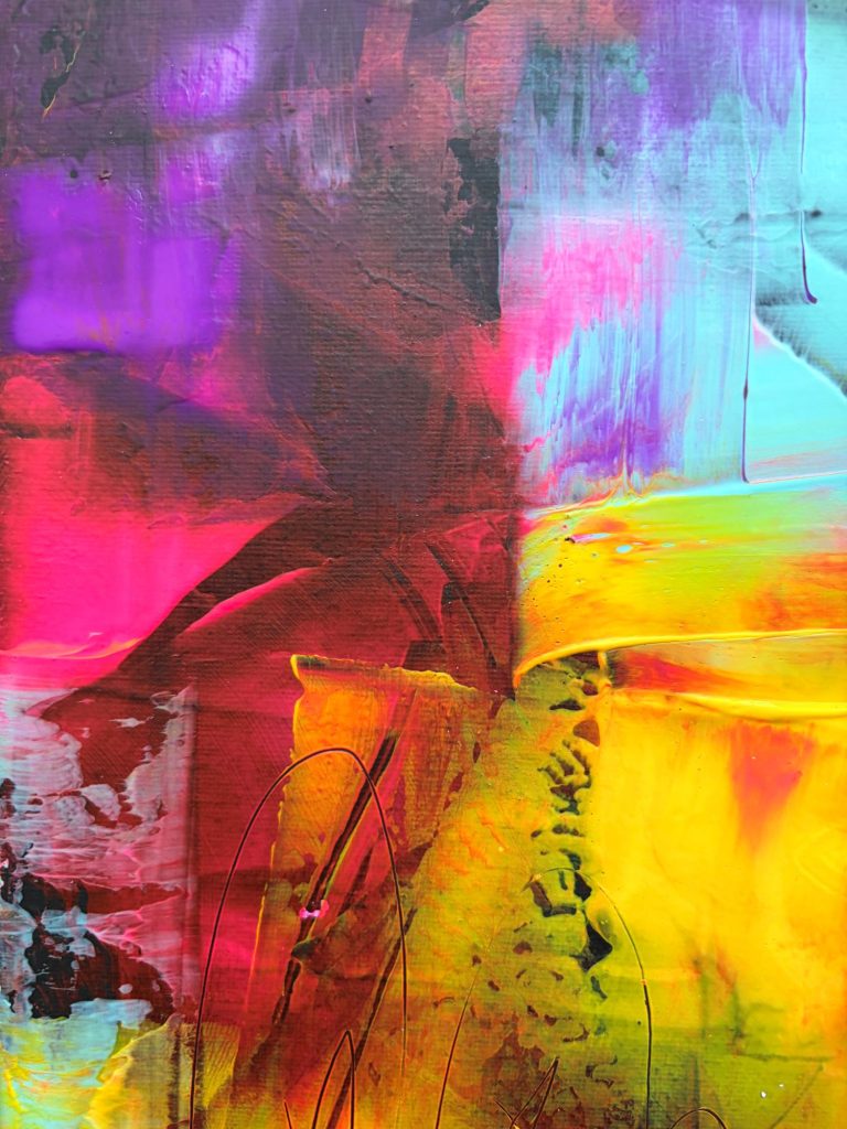 Tauchen Sie ein in meine farbenfrohe Galerie für abstrakte Acrylmalerei auf Leinwand.