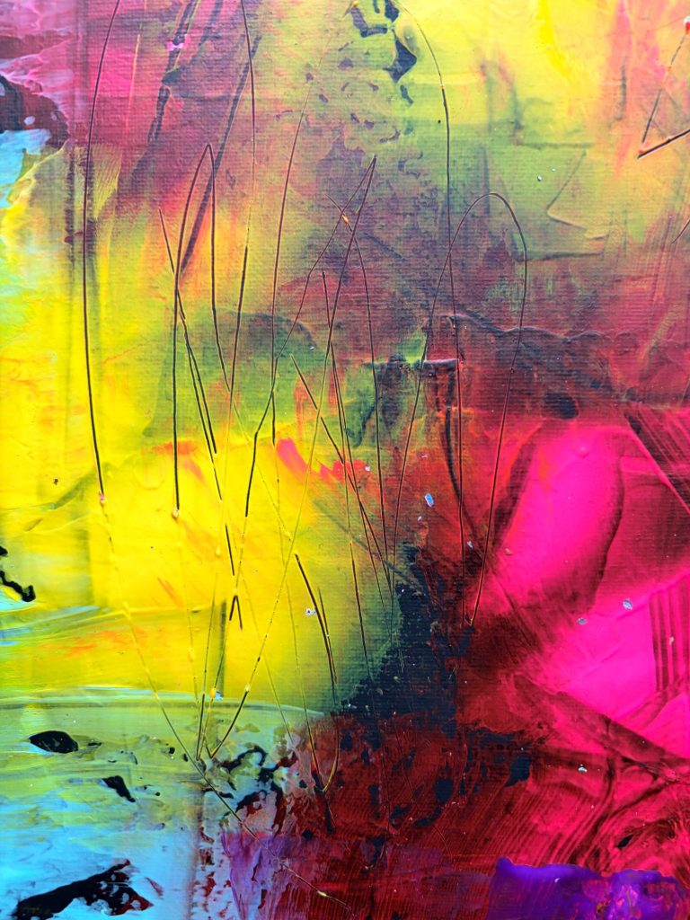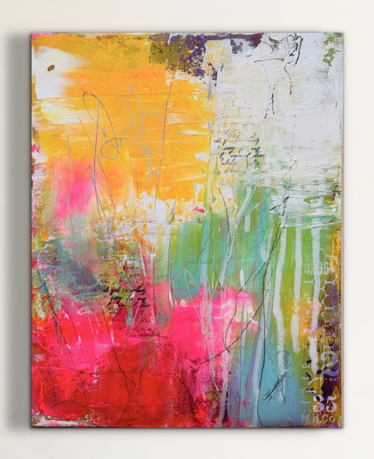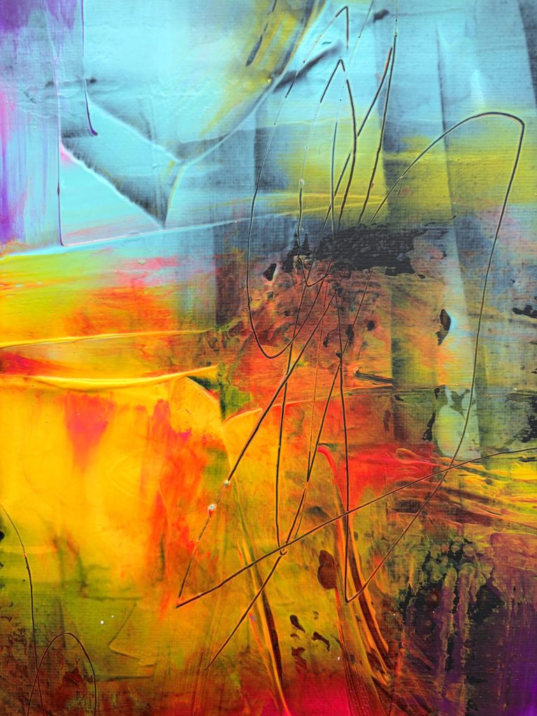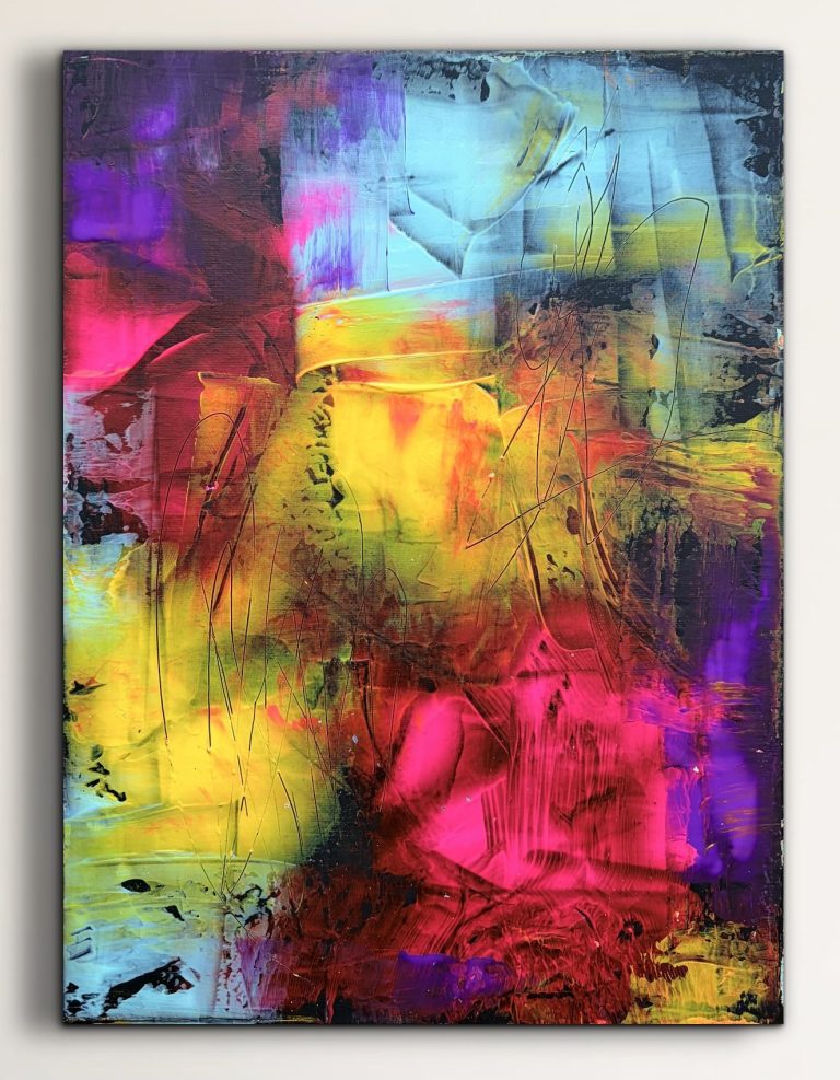 Tauchen Sie ein in meine farbenfrohe Galerie für abstrakte Acrylmalerei auf Leinwand.