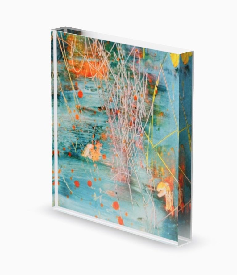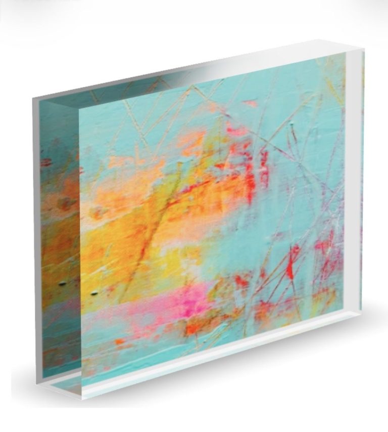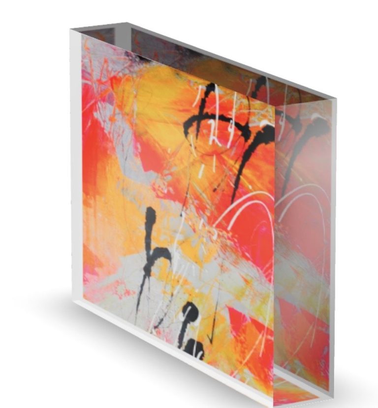 Freistehende Acrylblöcke, in denen Farbe, Licht und Tiefe miteinander verschmelzen.